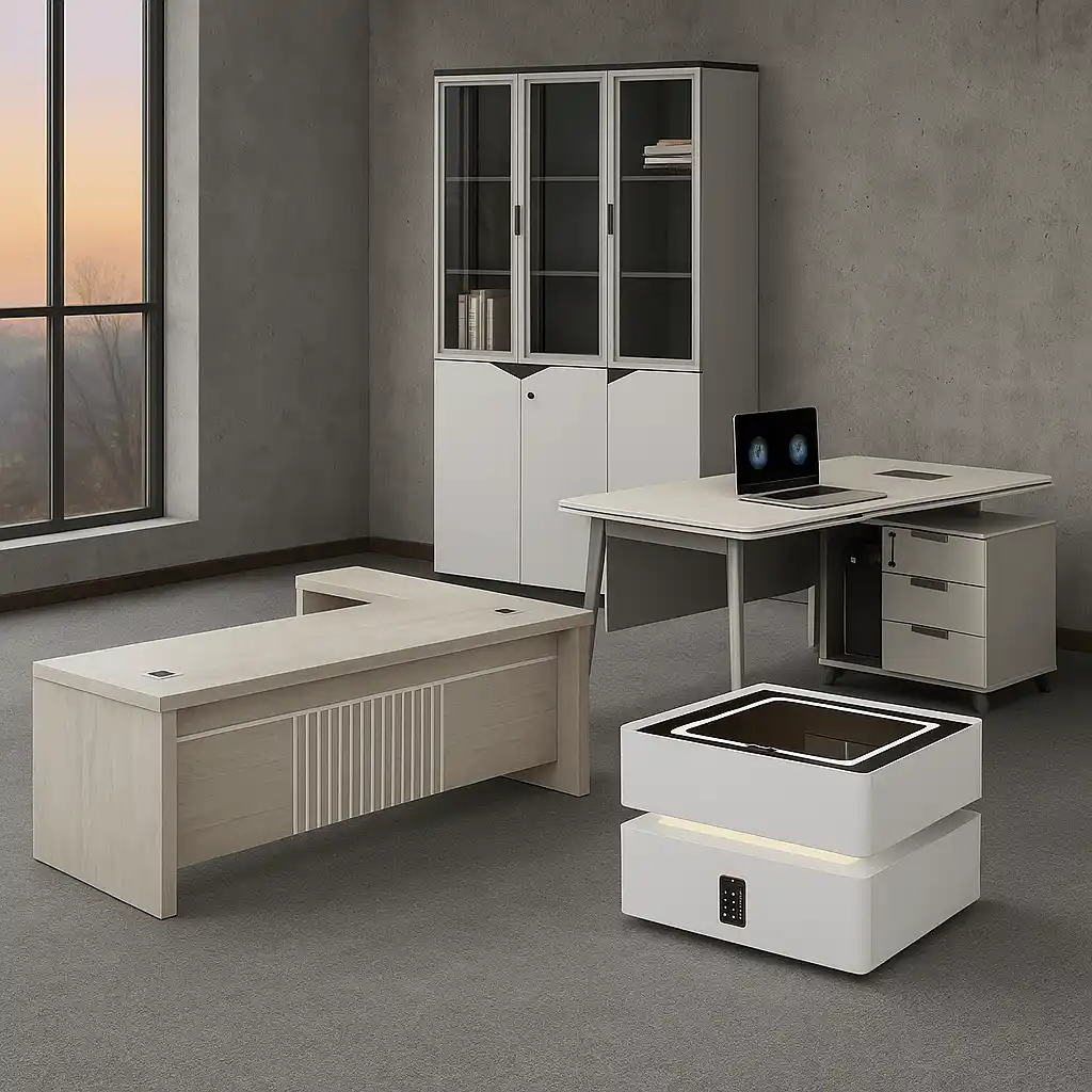Büromöbelset Premium – Chefschreibtisch, ergonomischer Bürostuhl & Aktenschrank mit Regal