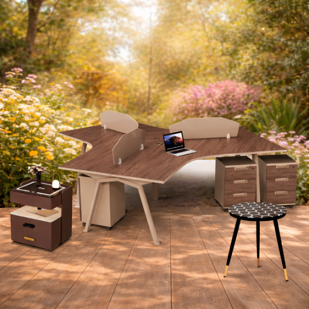 Arbeitstisch-System für 4 Arbeitsplätze mit integrierten Schränken – Modernes & elegantes Design – Premiumqualität 2800×2800×750 mm
