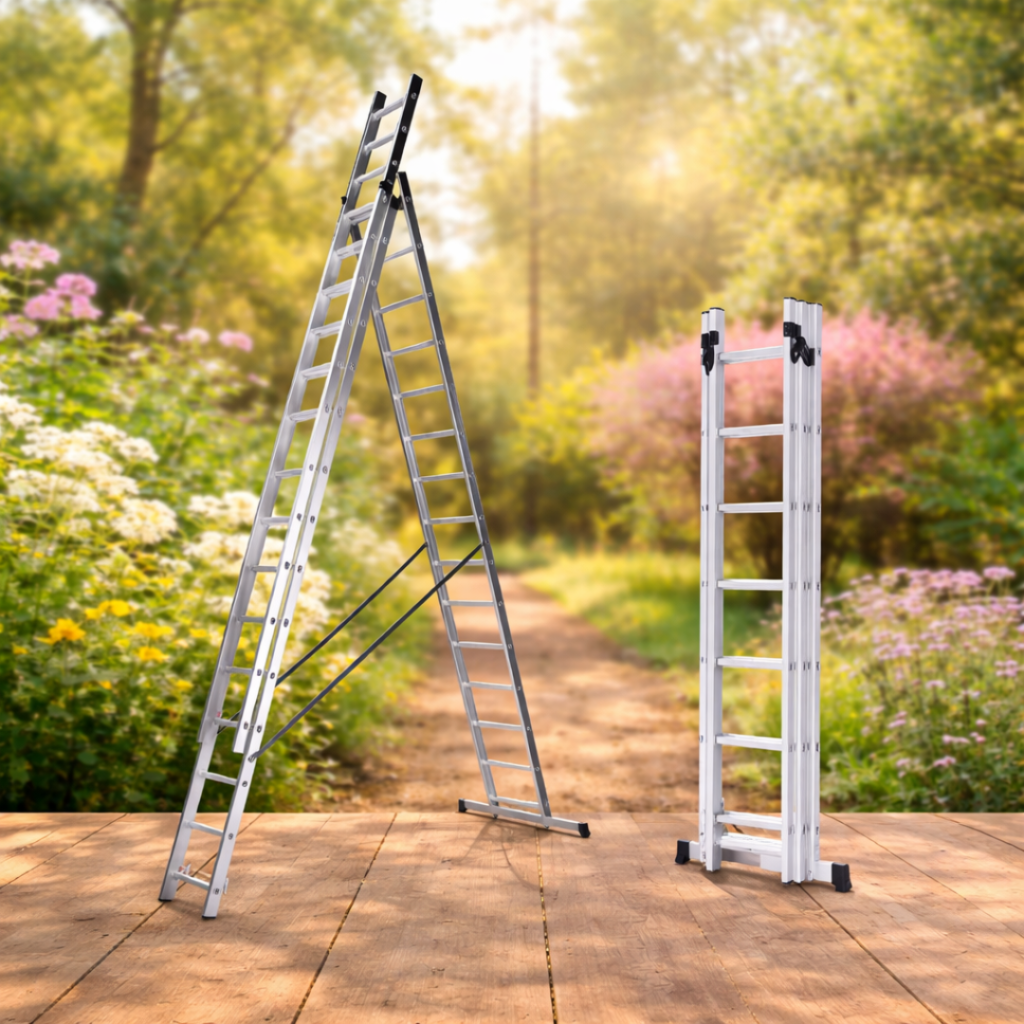 Aluminium Mehrzweckleiter – 3×13 Sprossen – teleskopierbar – 8,8 m Arbeitshöhe – 150 kg Tragkraft