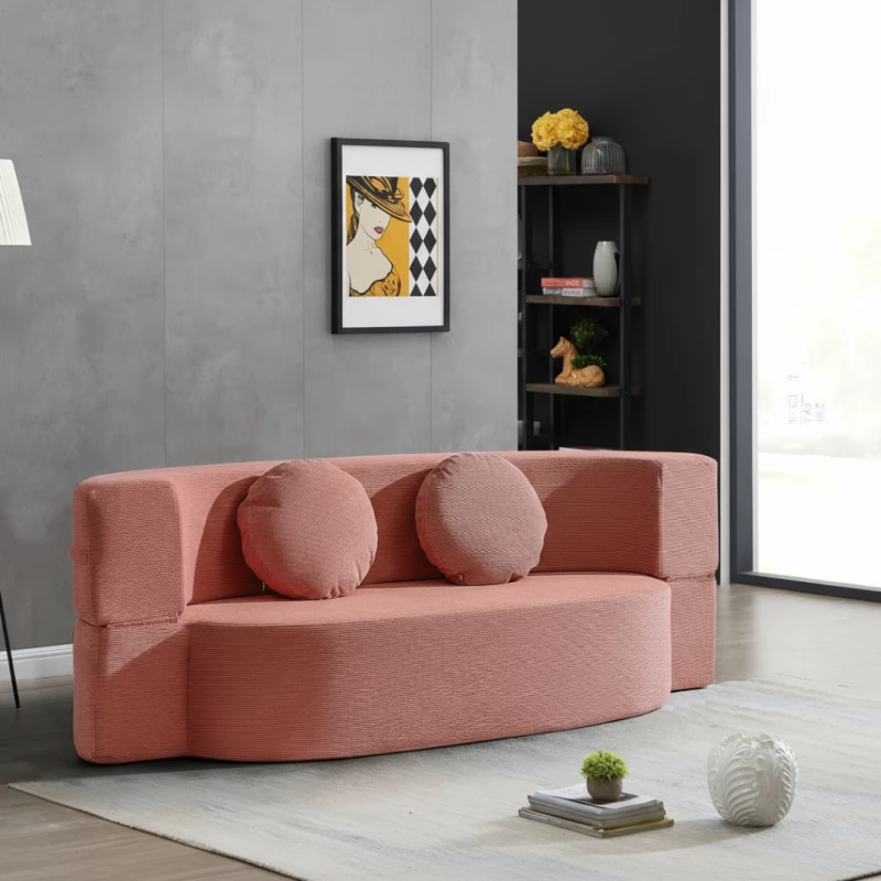 2-Sitzer Klappsofa aus Vollschaum in Rosa – Modernes Polstersofa ohne Gestell, platzsparend & komfortabel