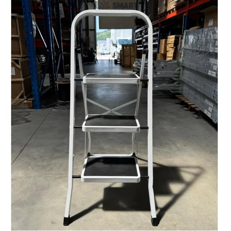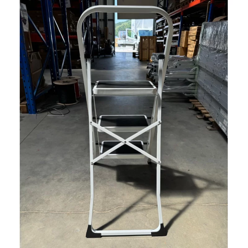 Die Konstruktion aus widerstandsfähigem Stahl sorgt für eine hohe Belastbarkeit und lange Lebensdauer – selbst bei regelmäßigem und intensivem Einsatz. Die drei extra breiten Stufen sind mit einer rutschfesten Beschichtung versehen und bieten sicheren Halt beim Auf- und Absteigen.