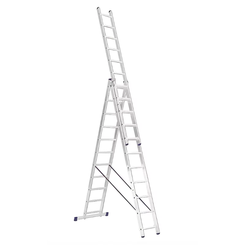 Diese teleskopierbare Aluminium-Mehrzweckleiter (3×11) bietet höchste Reichweite und Stabilität für professionelle und private Anwendungen.