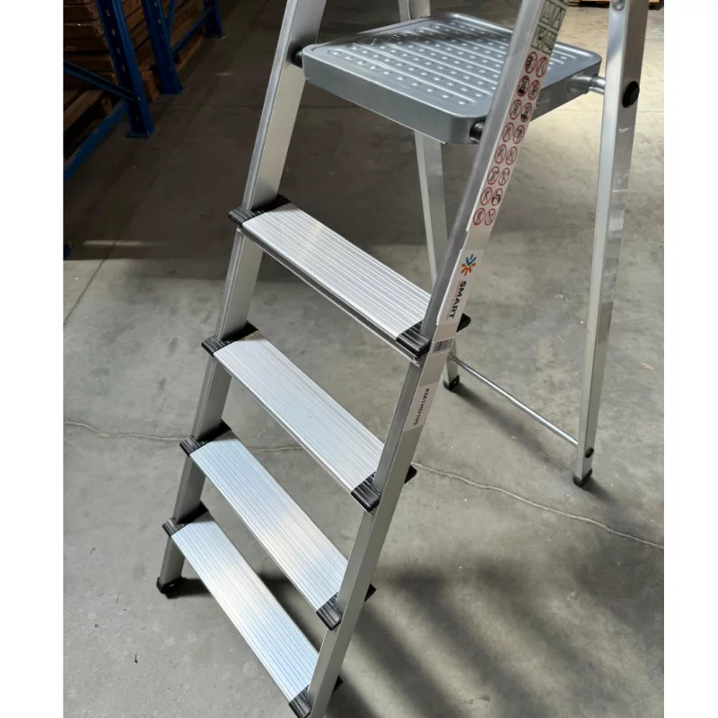 Aluminium Stufenleiter 5 Stufen – klappbar, stabil, rutschfest & leicht | Haushaltsleiter mit Arbeitsplattform