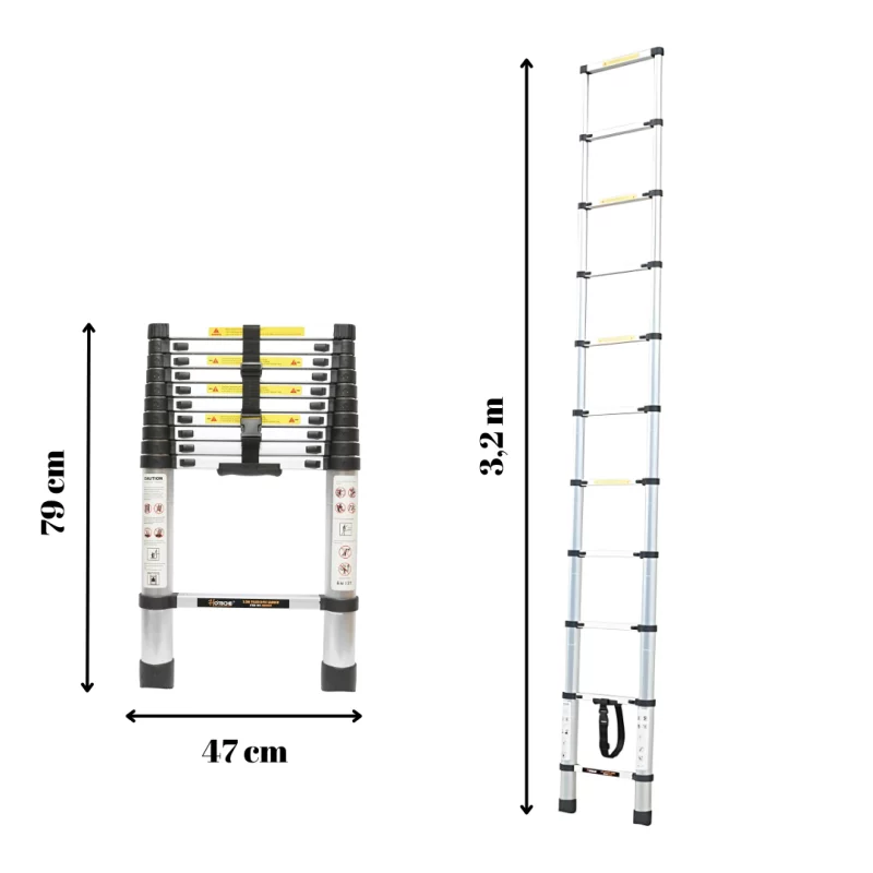 Aluminium Teleskopleiter 3,2 m – Kompakte ausziehbare Leiter mit 11 Stufen