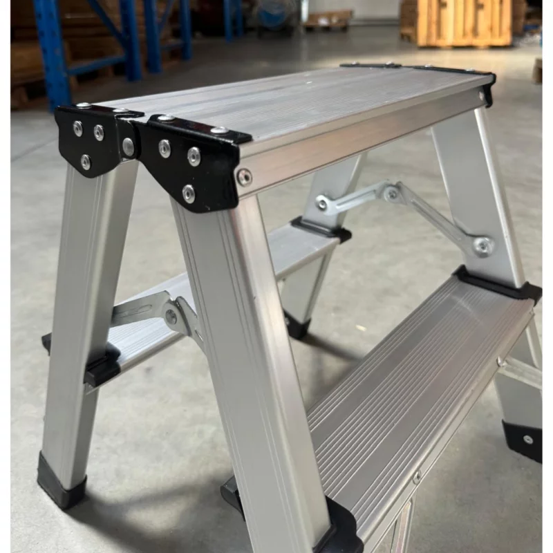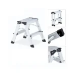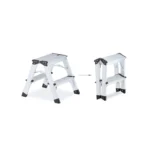 Diese 2-stufige Aluminium-Trittleiter ist ein kompaktes, klappbares Modell, das sich ideal für alltägliche Aufgaben im Haushalt, im Büro, in kleinen Geschäften oder auch in Werkstätten eignet. Dank der eloxierten Aluminiumkonstruktion ist sie besonders leicht und dennoch robust, wodurch sie sich sowohl für häufige Einsätze als auch für schnelle, spontane Arbeiten hervorragend eignet.