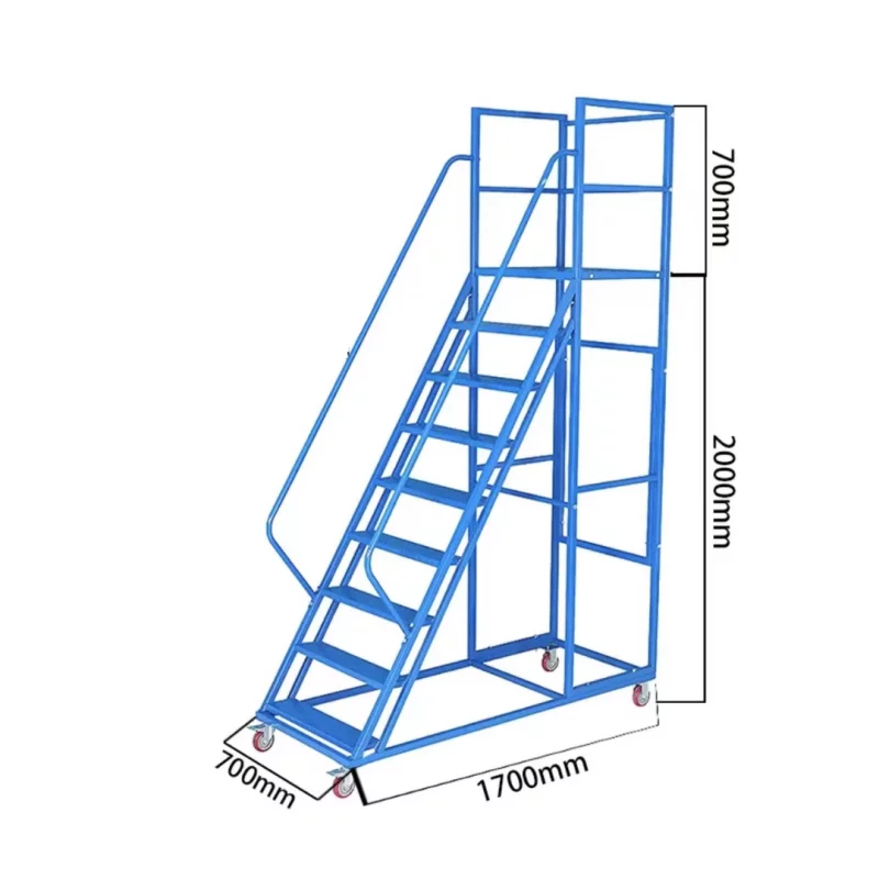 Fahrbare Plattformtreppe mit Arbeitsplattform & Sicherheitsgeländer – 1700×700×2000+700 mm – EN 131 konform