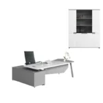 Gestalten Sie Ihren Arbeitsplatz stilvoll, professionell und funktional mit diesem Premium-Büromöbelset im modernen, eleganten Design. Das Set kombiniert einen großzügigen Chefschreibtisch mit Seitenschrank, einen ergonomischen Bürostuhl aus Öko-Leder und einen geräumigen Aktenschrank mit integriertem Bücherregal – die perfekte Komplettlösung für anspruchsvolle Arbeitsumgebungen.