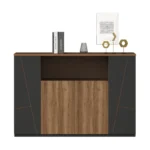 Sein elegantes Holzdekor in warmen Brauntönen fügt sich harmonisch in jede moderne Büroeinrichtung ein.