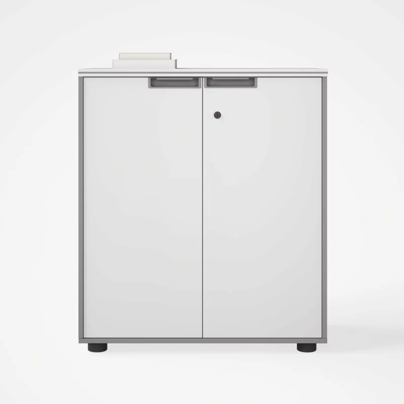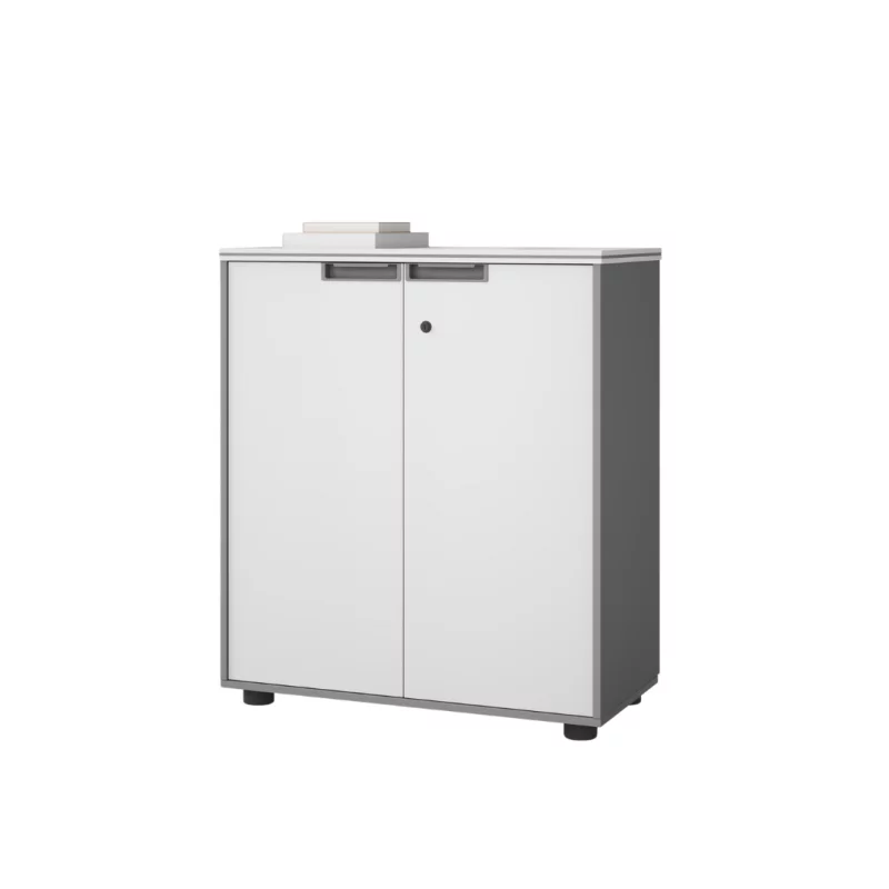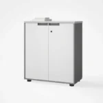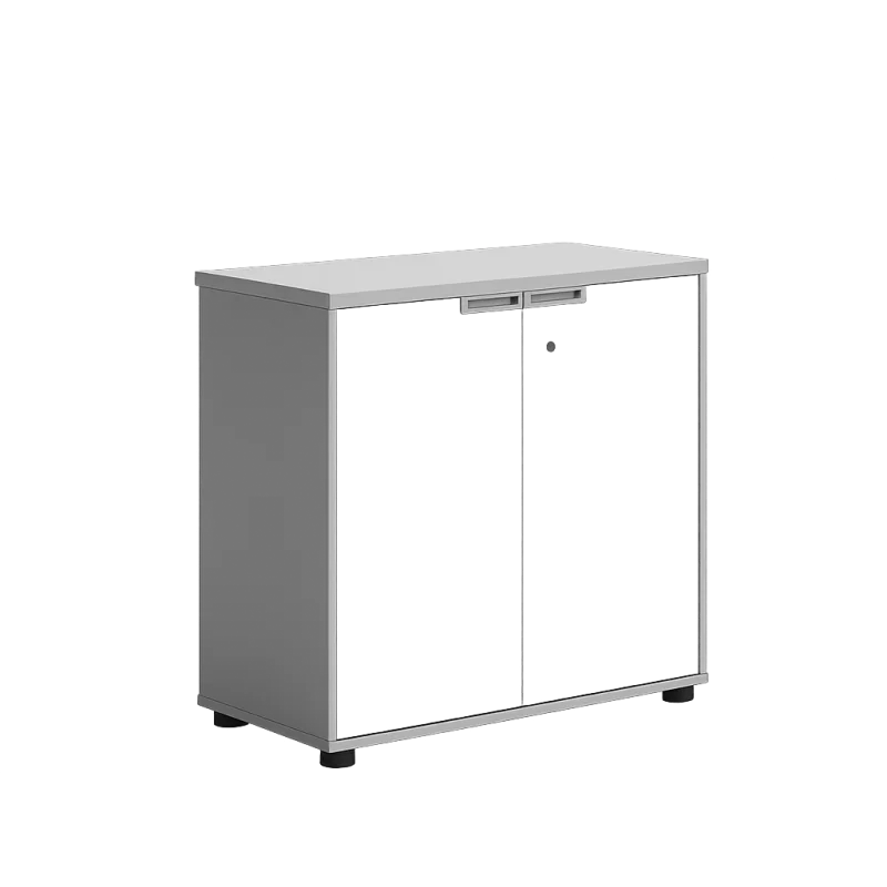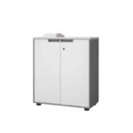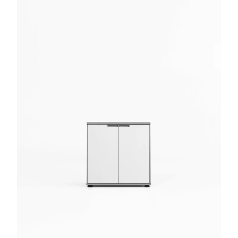 Mit ihren zwei Türen und großzügigem Innenraum bietet sie ausreichend Platz für Akten, Dokumente und Bürozubehör. Die klaren Linien, die Kombination aus Grau und Weiß sowie die ergonomischen Aluminiumgriffe verleihen dieser Kommode einen modernen, professionellen Charakter.