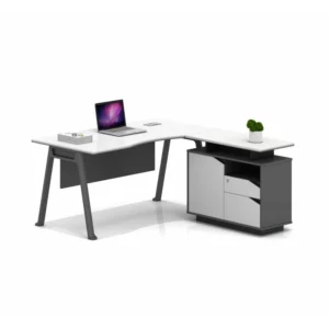 Eckschreibtisch mit Seitenschrank und Metallbeinen – Modernes & elegantes Design – Premiumqualität 1600×800×750 mm (Weiß)