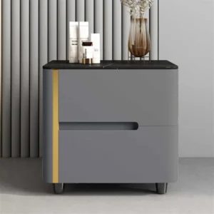 Moderne Nachtkommode aus Sinterstein, Eiche & Metall – Design Nachttisch Grau 50x40x50 cm
