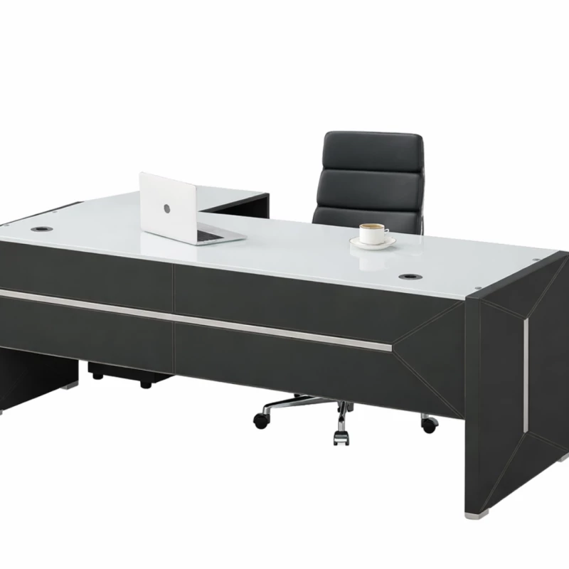 Manager Schreibtisch 2200×1300 mm mit 12 mm Sicherheitsglas & Metallkonstruktion – Executive Design
