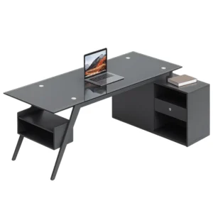 Die Glasoberfläche verleiht dem Schreibtisch eine moderne, klare Linienführung und unterstreicht den hochwertigen Charakter des Arbeitsplatzes.