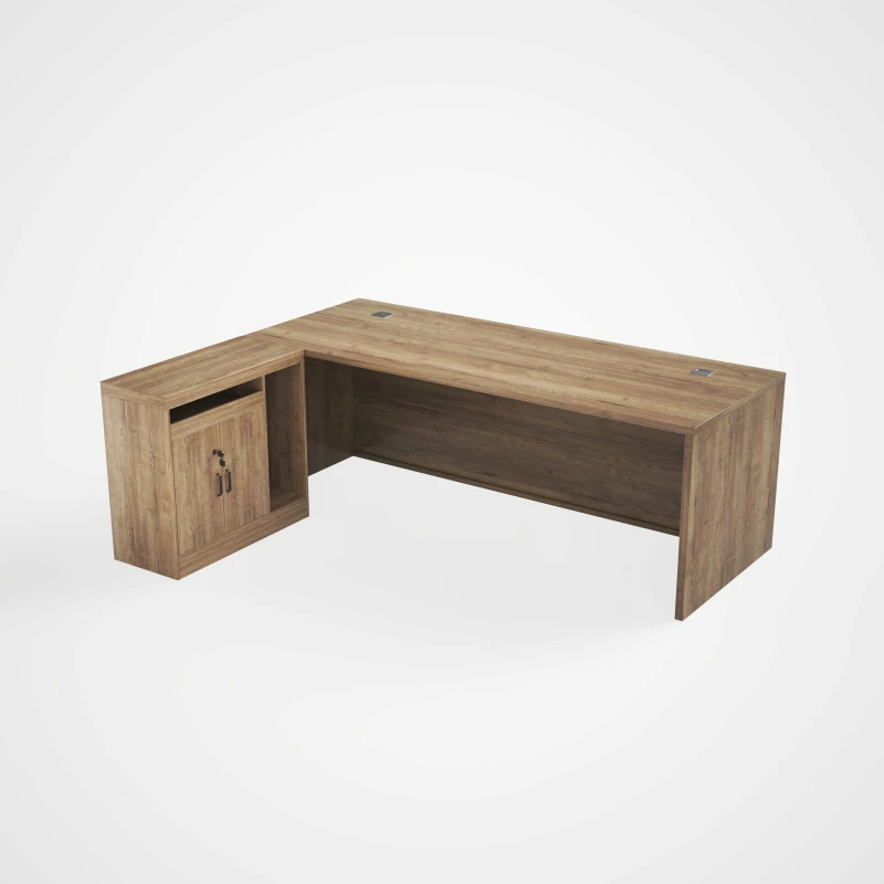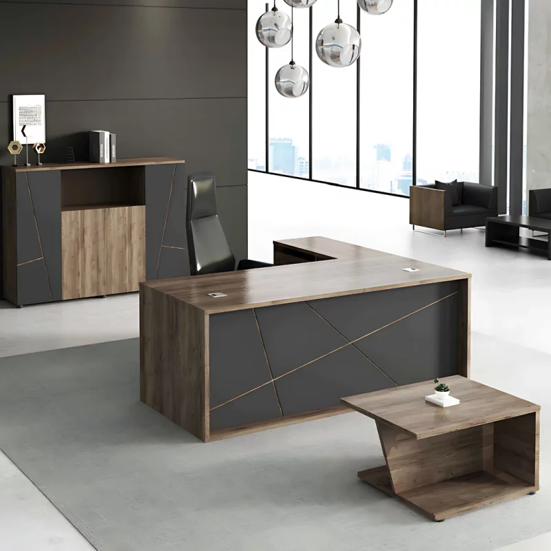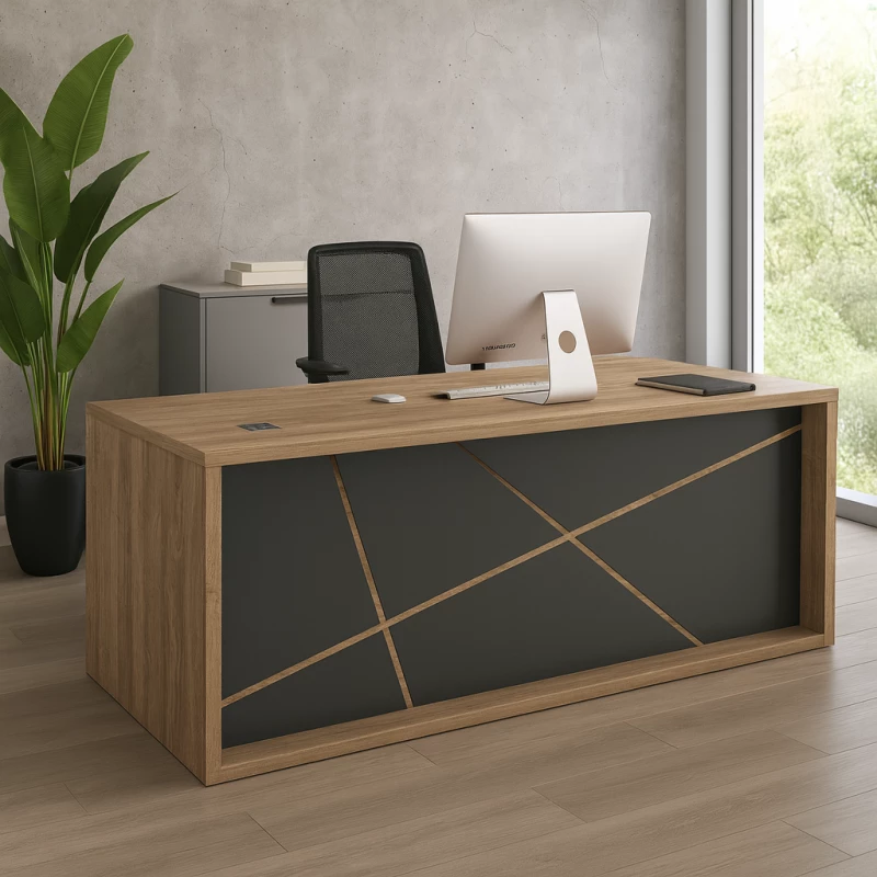 Er bietet eine großzügige Arbeitsfläche und intelligente Stauraumlösungen – ideal für moderne Büros und leitende Positionen.