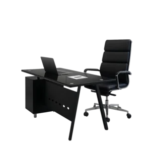 Der Schreibtisch wurde für höchste Ansprüche entworfen – gefertigt aus hochwertiger melaminbeschichteter Spanplatte (50 mm). Die großzügige Arbeitsfläche bietet ausreichend Platz für Dokumente, Laptop und Zubehör. Integrierte Schubladen sorgen für Ordnung und Organisation.