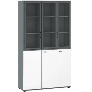 Moderner Aktenschrank mit 3 Türen & Glasaufsatz 120x40x200 cm – Büroschrank aus Melamin mit Aluminiumrahmen