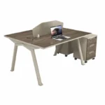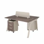 Der robuste Tisch besteht aus 25 mm melaminbeschichtetem Holz, bietet hervorragende Stabilität und verleiht dem Büro ein elegantes, zeitgemäßes Erscheinungsbild. Die integrierten mobilen Schränke sorgen für reichlich Stauraum und ermöglichen schnellen Zugriff auf Dokumente und Arbeitsmaterialien.