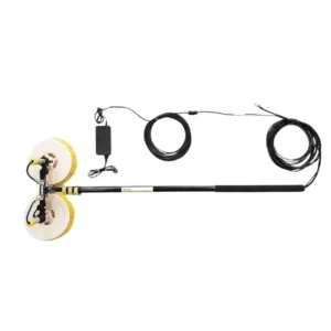 Doppelte Photovoltaik-Reinigungsbürste mit bürstenlosem 24-V-Motor & 7,5-m-Teleskopstange – Duale Nylonbürsten Ø300 mm, Aluminiumgestänge, Netzadapter 220 V