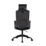 Die hohe Rückenlehne besteht aus strapazierfähigem Mesh-Gewebe mit einem stabilen Rahmen aus glasfaserverstärktem PP (PP+GF).