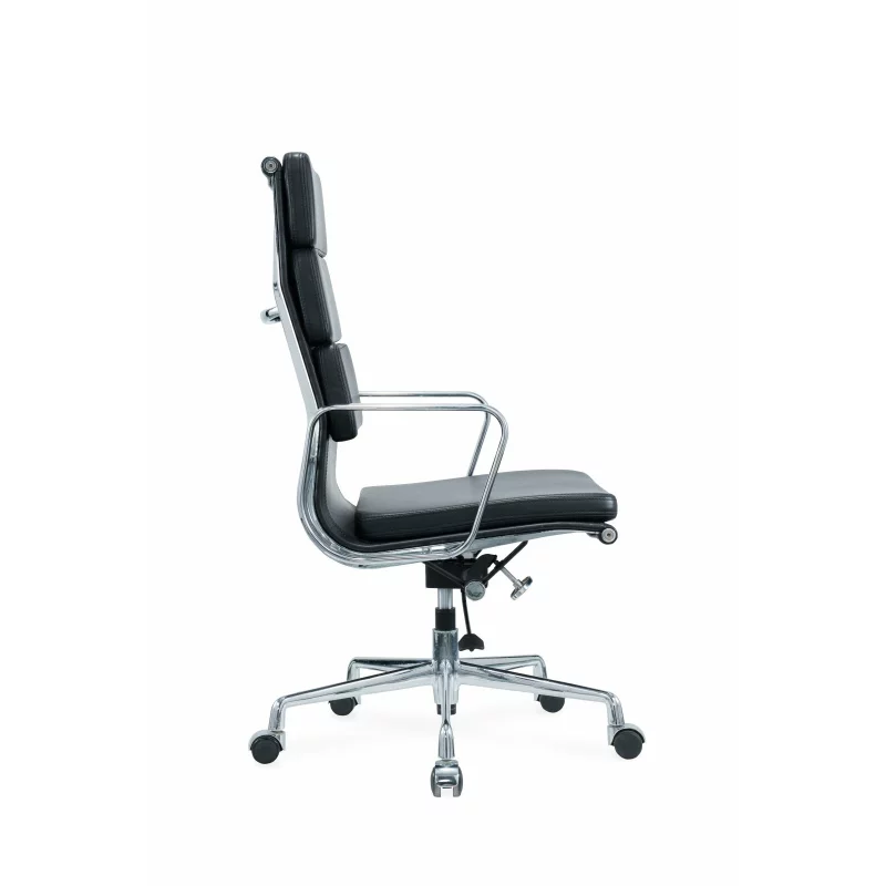 Sitzfläche und Rückenlehne bestehen aus pflegeleichtem Premium-Kunstleder, das nicht nur stilvoll aussieht, sondern auch komfortabel bleibt – selbst bei langen Arbeitstagen. Die ergonomische Form unterstützt eine gesunde Sitzhaltung und reduziert Belastungen im Rückenbereich.