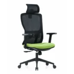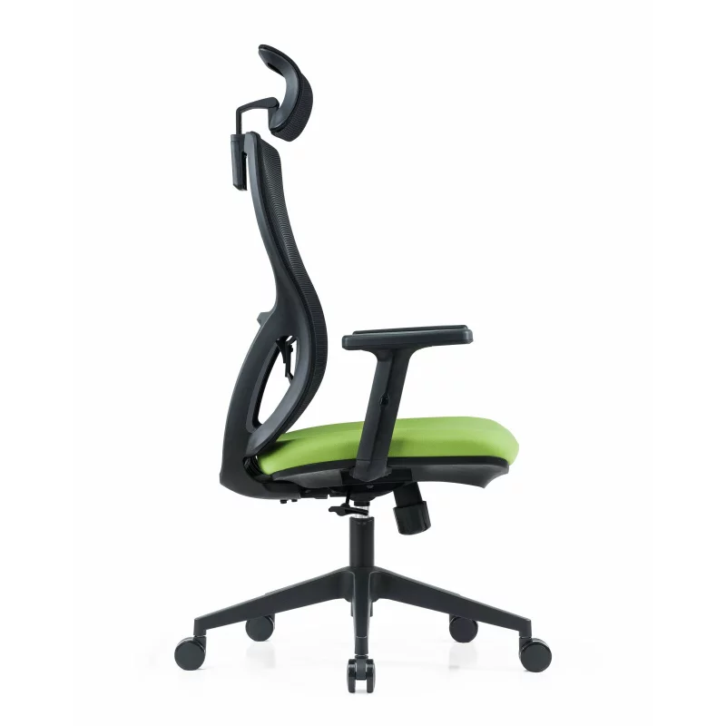 Der stilvolle grün-olivfarbene Sitz setzt einen eleganten Farbakzent, während die atmungsaktive schwarze Mesh-Rückenlehne für eine moderne Optik und optimale Luftzirkulation sorgt. So bleiben Sie auch bei langen Meetings oder konzentrierten Arbeitsphasen angenehm kühl und komfortabel.