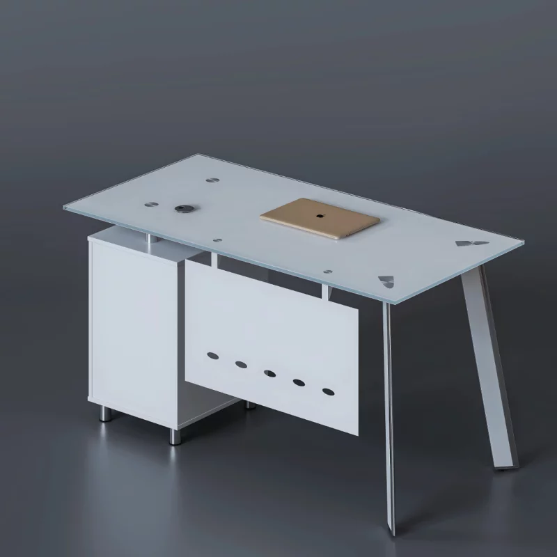 Moderner weißer Glas-Schreibtisch mit festem Seitenschrank – kratzfest, pflegeleicht & elegant – 1200×600×750 mm
