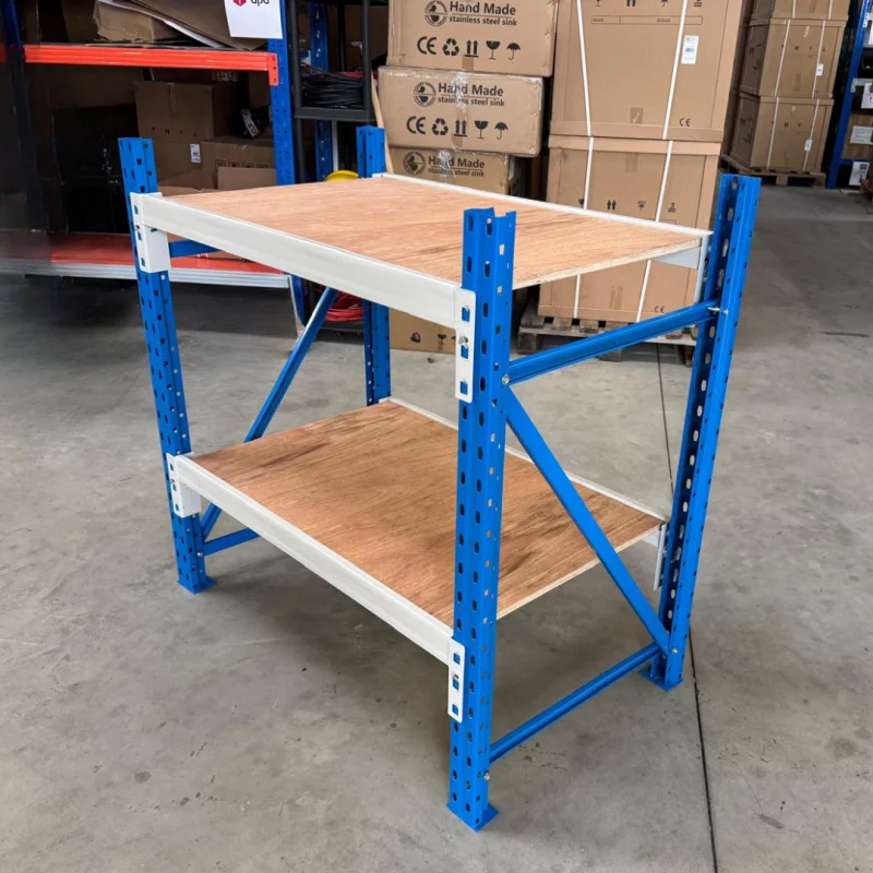 Werkbank Erweiterung 2000×600 mm mit Sperrholz & Rückwand – 200 kg/Ebene Blau & Weiß