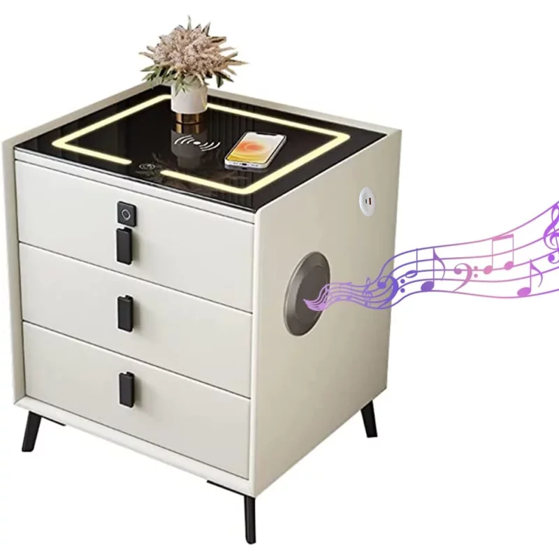 Smarter Nachttisch Weiß mit kabellosem Laden, Wireless Charging, Bluetooth & LED-Beleuchtung
