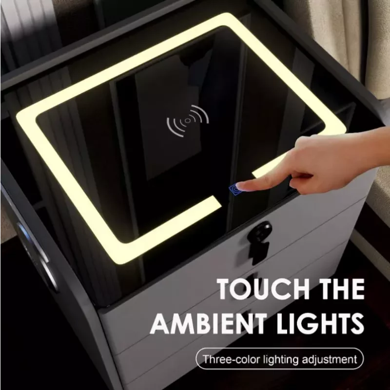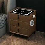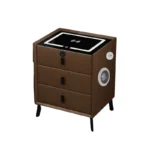Bringen Sie Wärme, Eleganz und modernste Technologie in Ihr Schlafzimmer mit diesem intelligenten Nachttisch in Braun. Das hochwertige Glas- und Holzdesign sorgt für eine stilvolle Optik, während die integrierten Smart-Funktionen höchsten Komfort bieten.