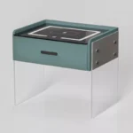 Verwandeln Sie Ihr Schlafzimmer mit diesem intelligenten Nachttisch in Grün, der durch sein schlankes Design und moderne Technologie einen stilvollen Akzent setzt. Die Kombination aus Glas- und Holzelementen sorgt für eine elegante Optik und fügt sich harmonisch in moderne Wohnkonzepte ein.