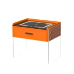 Intelligenter Nachttisch Orange mit kabellosem Laden & LED – Glas-Holz-Design
