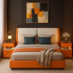 Dieser intelligente Nachttisch in Orange bringt Farbe, Ordnung und moderne Technik in Ihr Schlafzimmer. Das Möbelstück kombiniert ein markantes, modernes Design mit praktischen Funktionen für den täglichen Gebrauch.