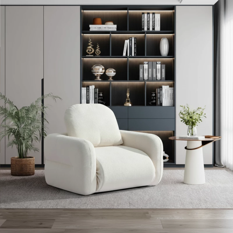 Der klappbare Sessel aus Polyurethanschaum W3350 in Beige ist die perfekte Lösung für moderne Wohnräume, in denen Flexibilität und Komfort im Mittelpunkt stehen. Dank seines intelligenten Faltmechanismus lässt er sich im Handumdrehen vom gemütlichen Sessel in eine komfortable Liegefläche verwandeln – ideal für kleine Wohnungen, Gästezimmer oder multifunktionale Räume.