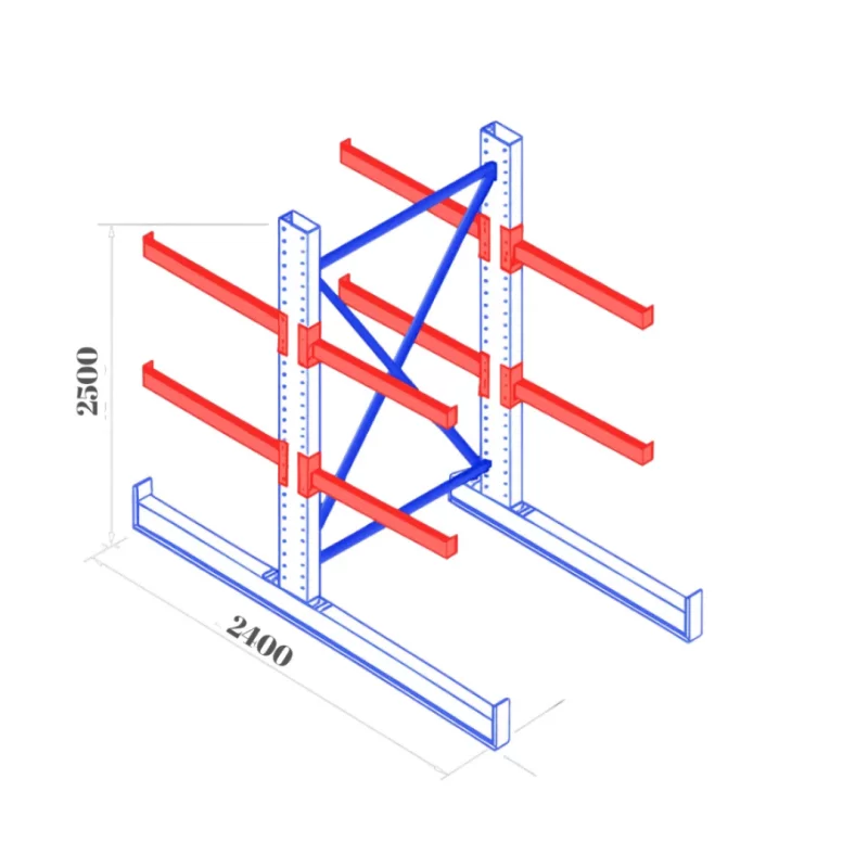 Kragarmregal 1500×2400×2500 mm – Schwerlastregal für Langgut – 1000 kg pro Arm – robust, modular & platzsparend (Blau)