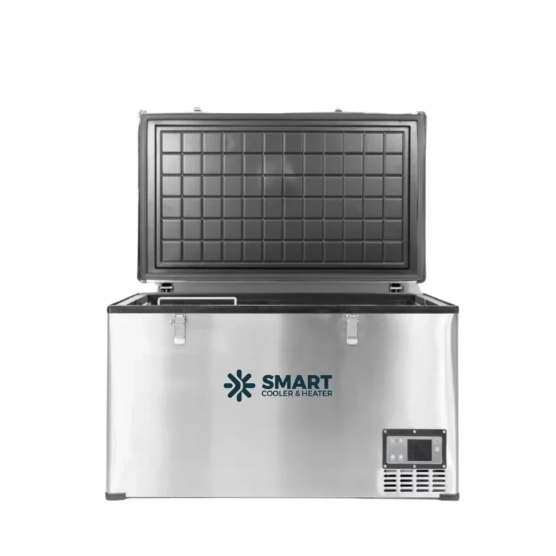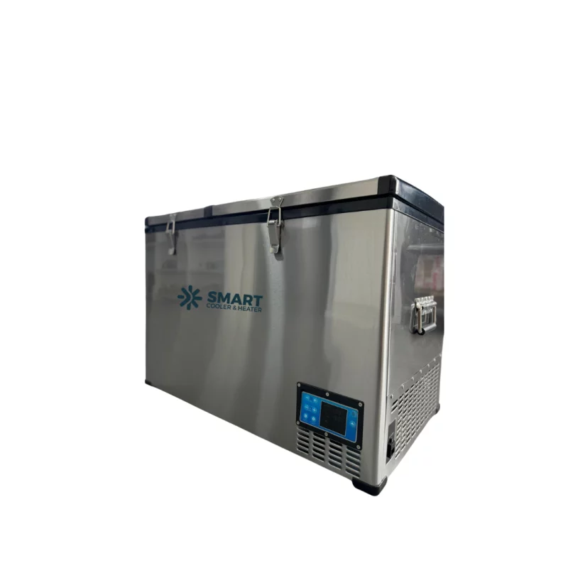 Smart Cooler 80L – Dual-Zone Kompressor-Kühlschrank mit Bluetooth 12V/24V/220V Edelstahlgehäuse & LCD-Display, −20°C Kühlleistung