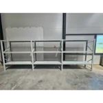Dieses weiße Metallregal mit einer Gesamtlänge von 5800 mm wurde entwickelt, um große Warenmengen sicher und effizient zu lagern.