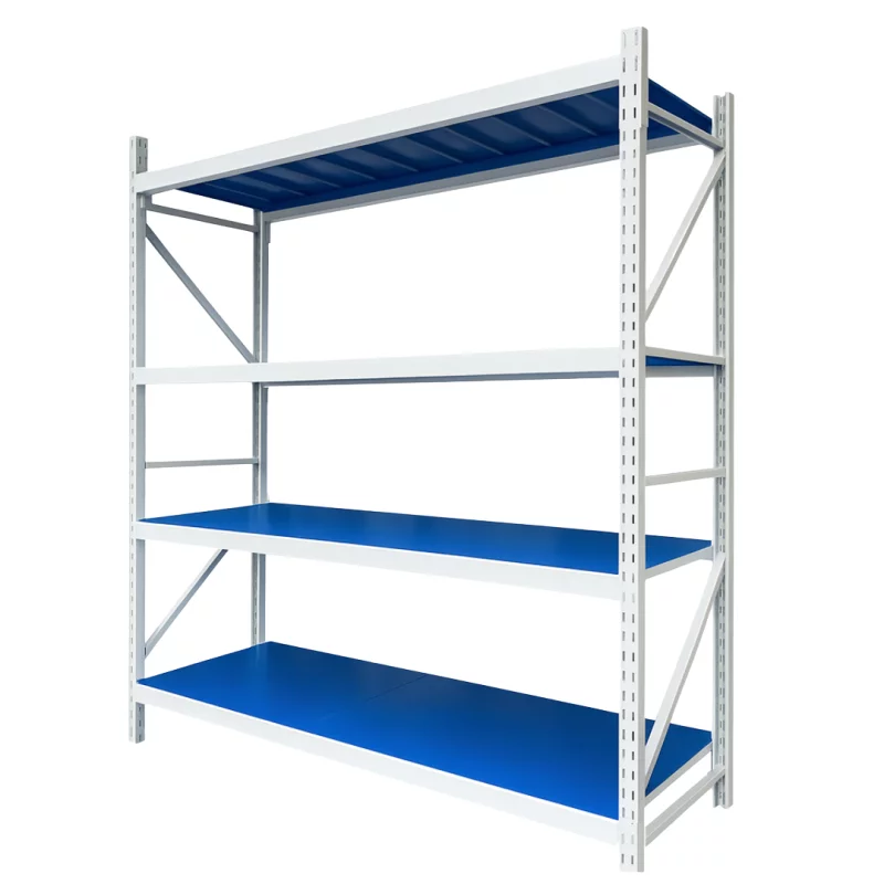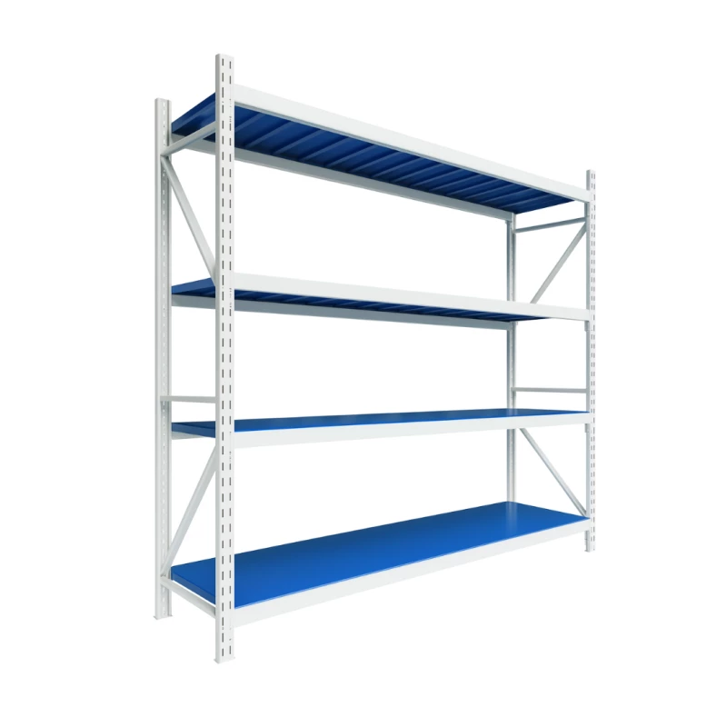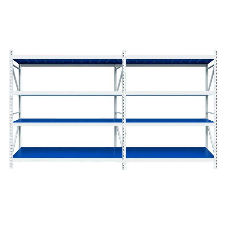 Schwerlastregal Metall Lagerregal verzinkt & pulverbeschichtet – H2500 × L2070 × T600 mm – 4 Ebenen – 800 kg Tragkraft – Weiß/Blau