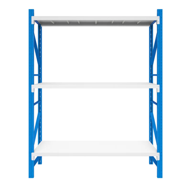 Schwerlastregal Metall Lagerregal verzinkt & pulverbeschichtet – H2500 × L2070 × T600 mm – 3 Ebenen – 600 kg (200 kg/Ebene) – Weiß/Blau