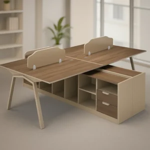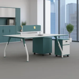 Doppelarbeitsplatz 1400×1200 mm mit Melaminplatte E1, Metallbeinen und mobilen Rollcontainern – Moderne Büro-Arbeitsstation für 2 Personen