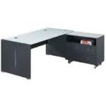 Geliefert wird der Manager-Schreibtisch mit integriertem Seitenschrank.