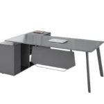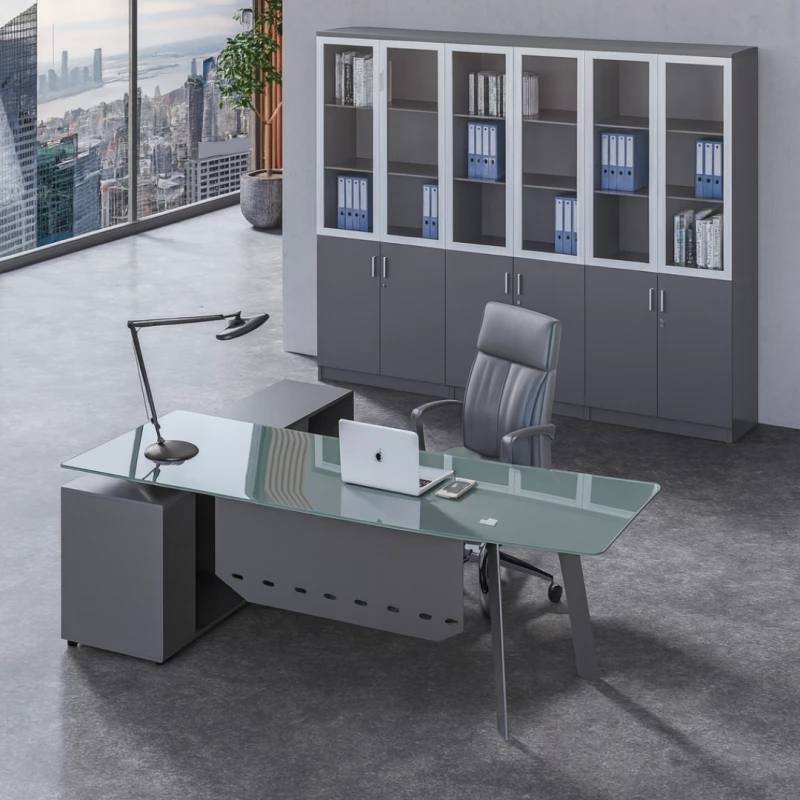 Dieser moderne Manager Schreibtisch 2000 × 800 × 750 mm steht für zeitloses Executive-Design, hochwertige Materialien und funktionale Büroarchitektur. Die Kombination aus 12 mm starkem ESG-Sicherheitsglas, stabiler Metallkonstruktion mit Aluminiumverstärkungen und integriertem Seitenschrank macht ihn zur idealen Lösung für Chefetagen, Managementbüros und hochwertige Homeoffice-Bereiche.