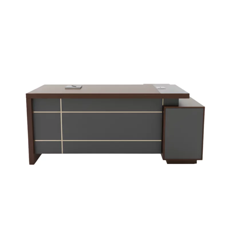 Chef-Schreibtisch mit Seitenschrank & Minibar – Modernes & elegantes Design – Premiumqualität 2000×950×750 mm (Braun / Schwarz)