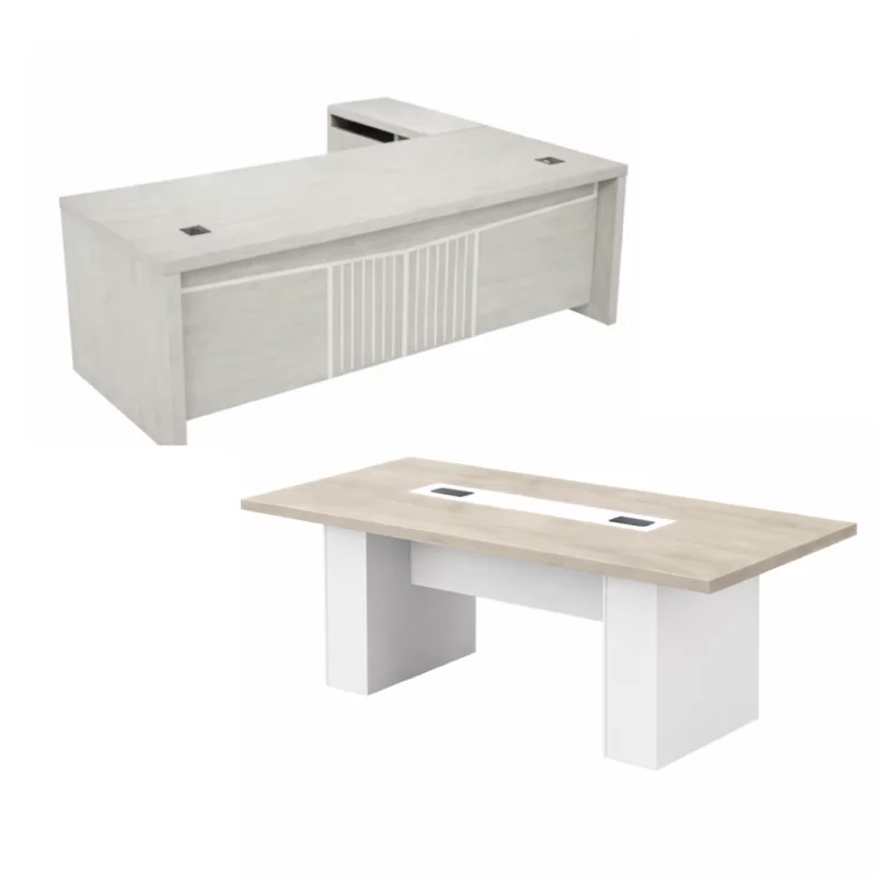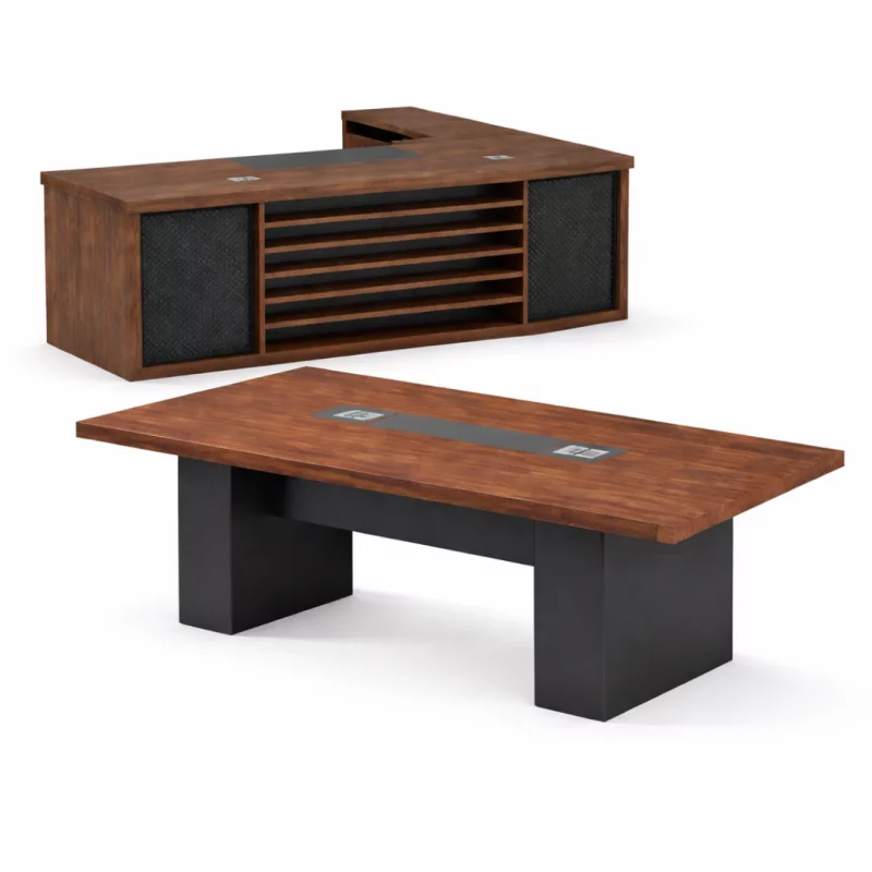 Chefschreibtisch 1800×800 mit Sideboard abschließbar + Konferenztisch 2000×1000