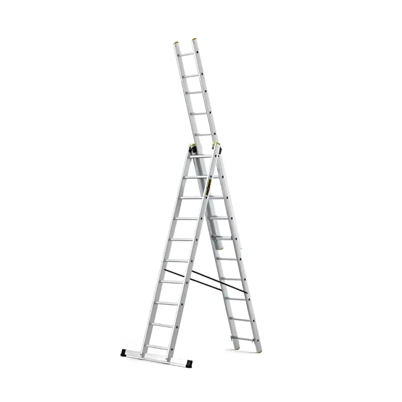 Aluminium Mehrzweckleiter – 3×13 Sprossen – teleskopierbar – 8,8 m Arbeitshöhe – 150 kg Tragkraft