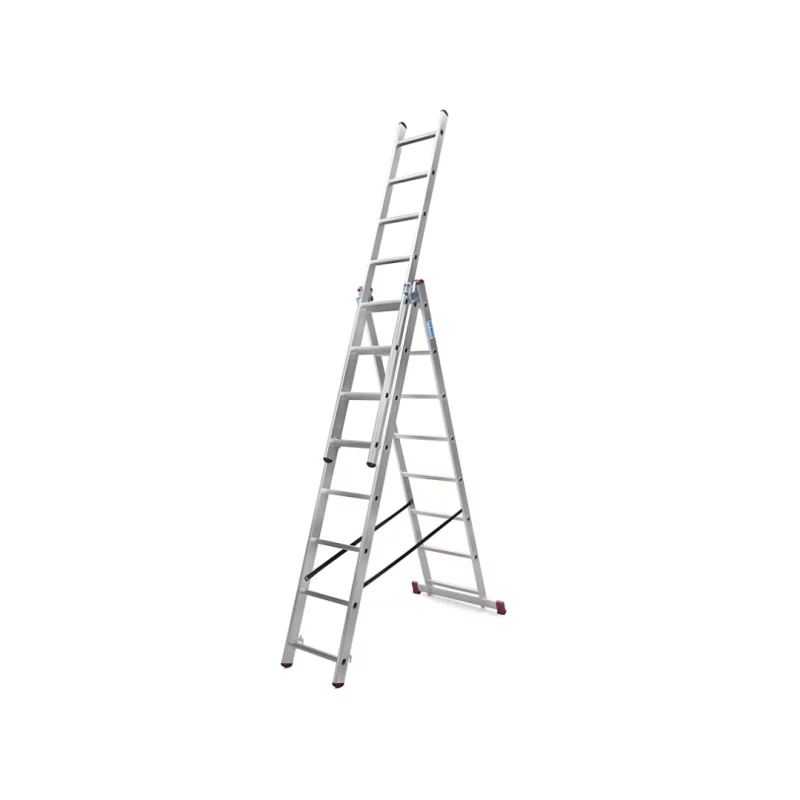 Aluminium Mehrzweckleiter – 3×11 Sprossen – teleskopierbar – 7,2 m Arbeitshöhe – 150 kg Tragkraft