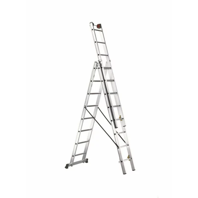 Aluminium Mehrzweckleiter – 3×9 Sprossen – teleskopierbar – 5,6 m Arbeitshöhe – 150 kg Tragkraft