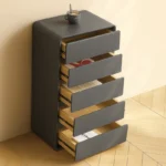 Kommode aus MDF mit PU-Leder – 4 Schubladen, 55x40x81 cm, Dunkelgrau