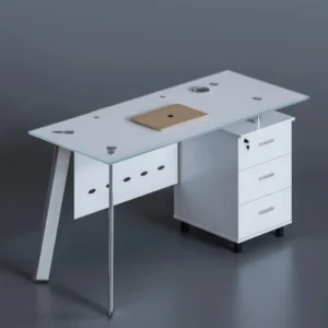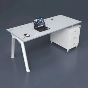 Moderner weißer Glas-Schreibtisch mit festem Seitenschrank – kratzfest, pflegeleicht & elegant – 1200×600×750 mm