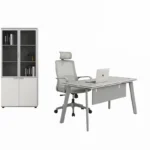 Schaffen Sie einen stilvollen und effizienten Arbeitsplatz mit diesem modernen Büromöbelset in Premiumqualität. Das Set vereint einen ergonomischen Bürostuhl, einen funktionalen Schreibtisch mit Seitenschrank und einen eleganten Aktenschrank mit Glastüren – ideal für strukturierte Arbeitsabläufe und ein professionelles Ambiente.