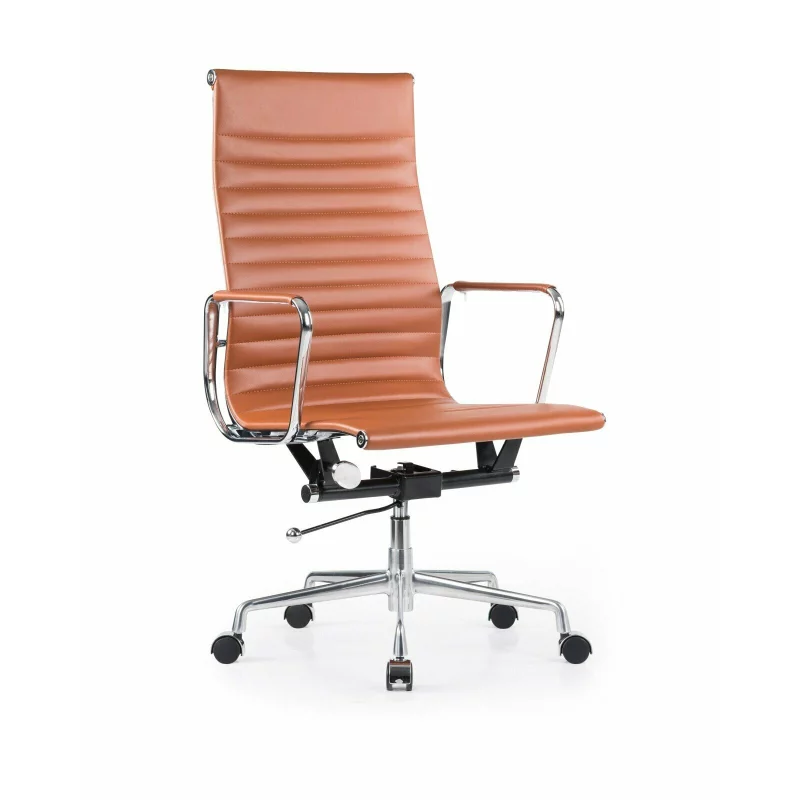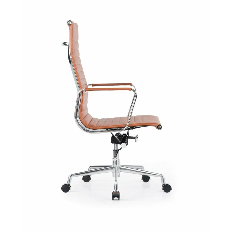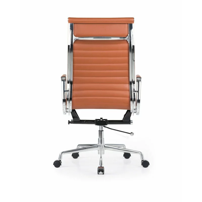 Ergonomischer Bürostuhl Braun aus Kunstleder mit Aluminiumrahmen – Höhenverstellbar & Elegant